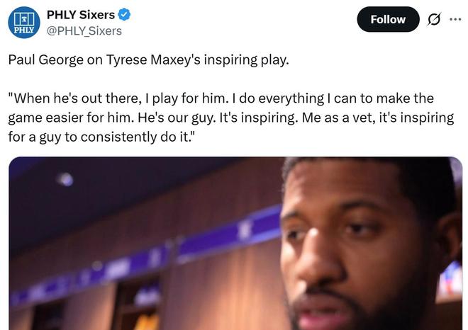 空砍44+7+9,52分钟联盟第一!乔治认可你是核心恩比德也亲承愧疚